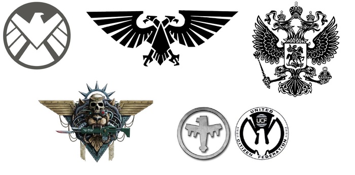 Но беда пришла, откуда не ждали. Эмблему черепа с крыльями я не смогу повторить не то что в металле но и скорее всего в дереве. И тут мне приходит подсказка от Богов Хаоса «Перерисуй Аквилу, авось инквизиторы не узнают». Сказано, сделано, надергав в сети референсов для ваяния свое собственной Аквилы из Вархаммера, Звездного Десанта, Агентов Щита и Герба Родной Страны (тоже ж двуглавый орел), я принялся за работу. И, казалось бы, что может пойти не так?