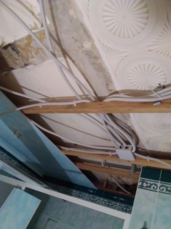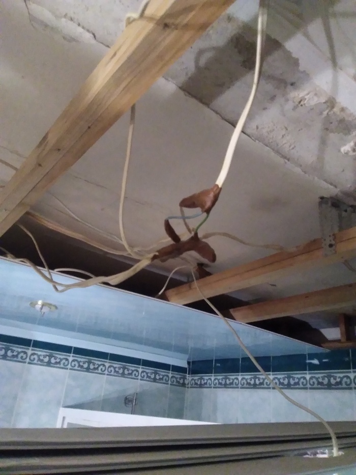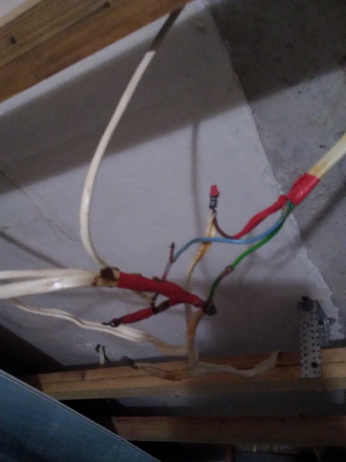 Далее проведена была на скорую руку работа. Так как гофру не крепили к потолку. И сделана распаечная коробка с необслуживаемым соединением по ГОСТу - пайка (соединение опаивалось). А медь с алюминием соединялась через wago.