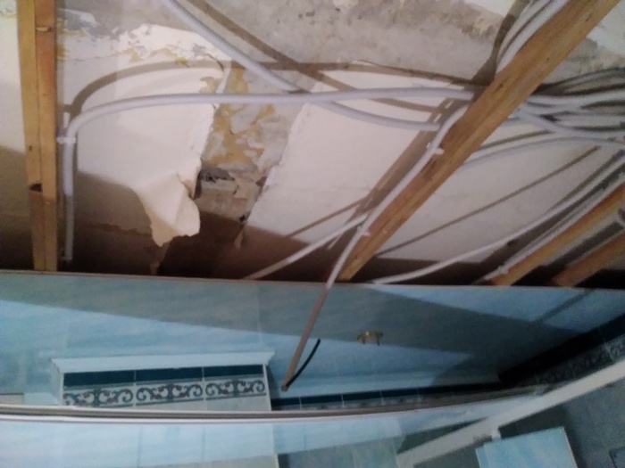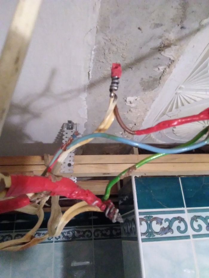 Разобрав потолок, малость был удивлён. Распаечных коробок нет, но есть два пучка подобия соединения(фото ниже).
