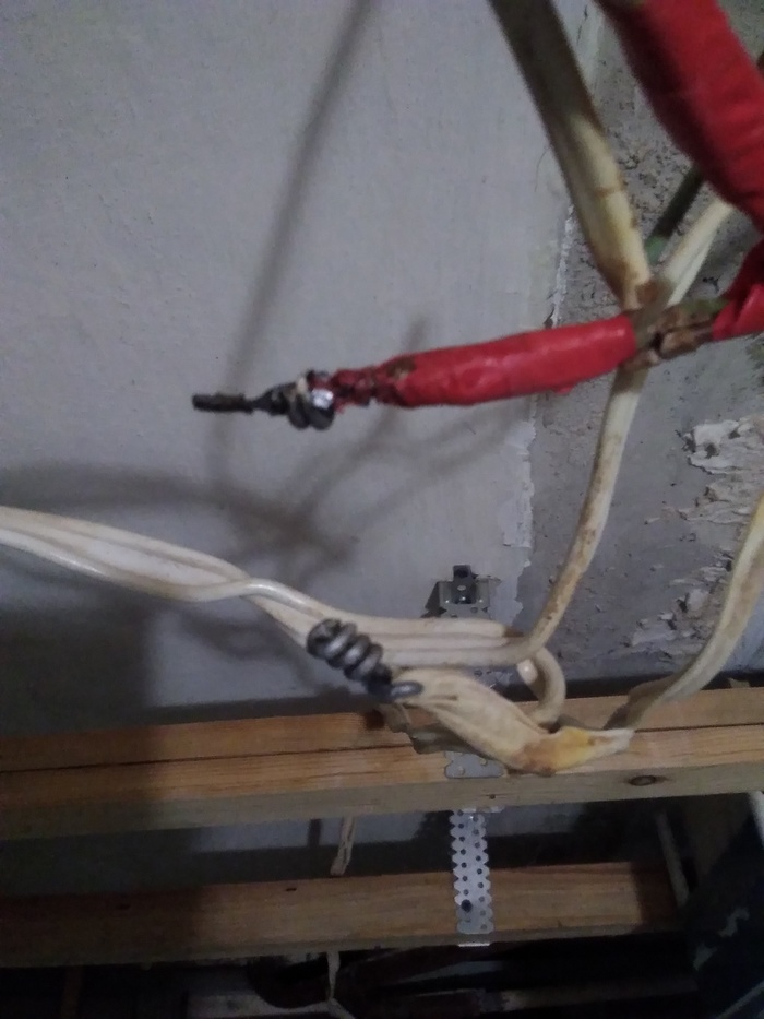 Разломав глину, с усилием. Обнаружил слой изоленты, а под ней... В соединении медь многопроволочная (опаяная) соединяется с моножилой алюминия. А медные многопроволочные скрутки не опаяны, просто перемотаны изолентой.