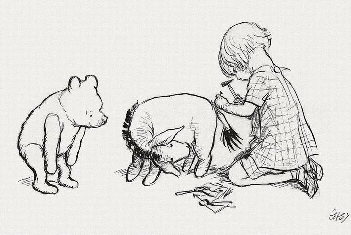 После успеха сборника стихов кто-то и посоветовал Милну написать про игрушки сына. Идея писателю очень понравилась, а кто будет иллюстратором - и так понятно.