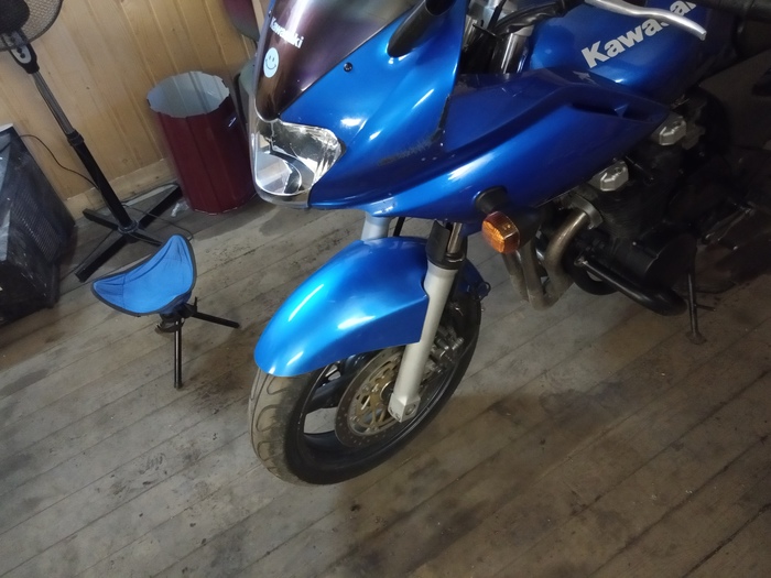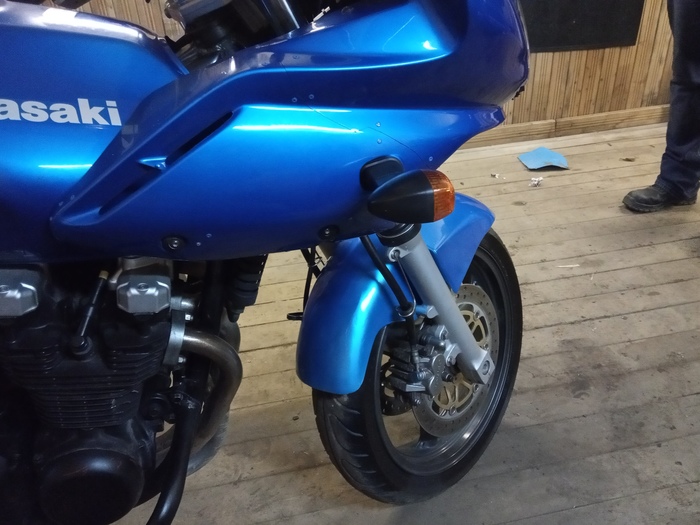 Наконец, сверлим в крыле дырки(тк в местах крепления были сколы и трещины, я их тоже заделала стеклотканью и зашпатлевала) и устанавливаем на мотоцикл.