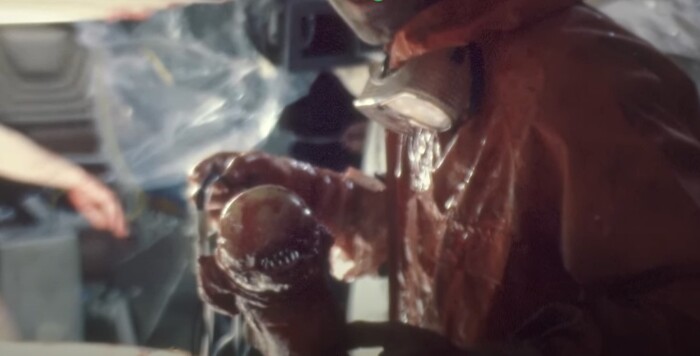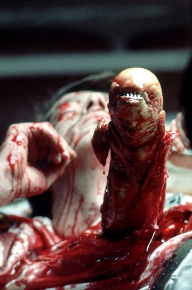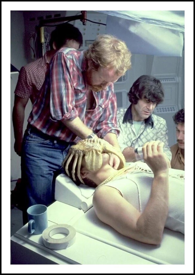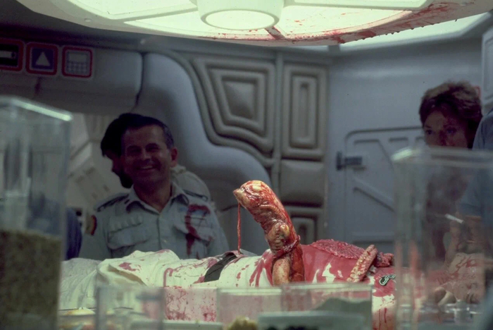 В итоге 20th Century Fox подбирает сей сценарий на волне успеха «Звездных Войн», ставит Ридли Скотта у руля и получается хит на все времена. Такая вот кратенькая история для введения в курс дела. Но как додумались до той сцены «рождения» ксеноморфа, ставшей визитной карточкой фильма и как реализовали?