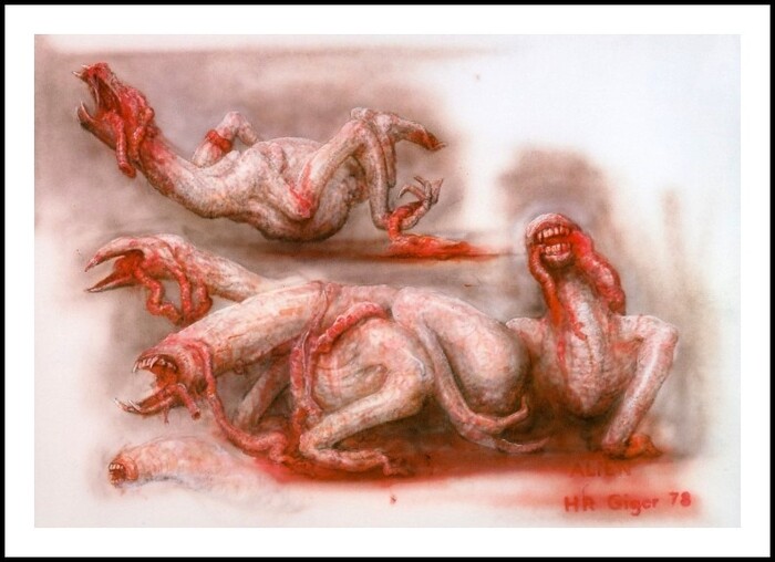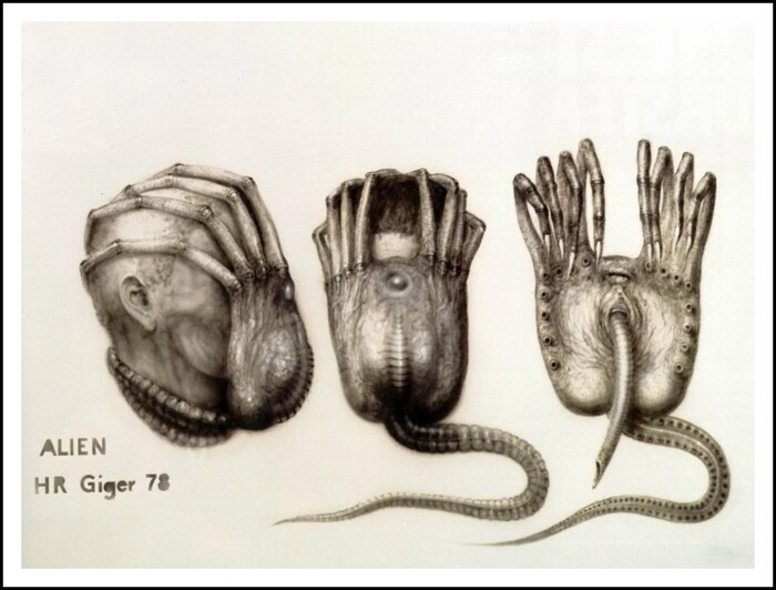 Гигер успел создать взрослую особь и яйца, нарисовал корабль, а также подготовил эскизы лицехвата и грудолома – но на все элементы жизненного цикла пришельца его физически просто не хватило.