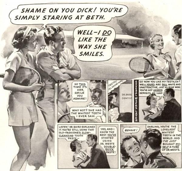 «Мамочка всегда была такой сердитой» — история матери, которая кричала на своих детей и постоянно чувствовала себя несчастной. Причина? Дешевая туалетная бумага, недостаточно мягкая и с вкраплениями щепок. Домохозяйка-адресат рекламы должна была захотеть поскорее отдать пять центов производителю туалетной бумаги класса люкс, лишь бы не представлять себе злоключения героини комикса во всех деталях.