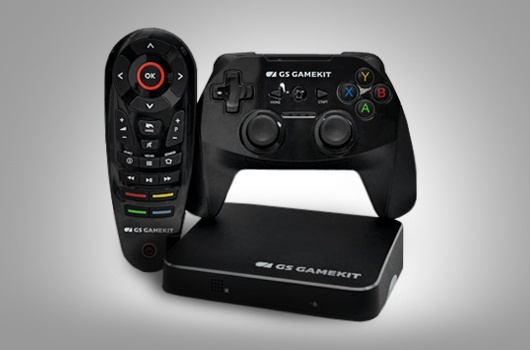 С точки зрения «начинки» GS Gamekit может похвастать процессором Amlogic S812 Quad Core, графическим ускорителем Eight Core Mali-450, беспроводными интерфейсами Bluetooth и Wi-Fi. Встроенная память консоли размером 128х105х33 мм составляет 32 Гб. В комплект также входят игровой пульт, геймпад (джойстик), кабели USB–microUSB и HDMI для просмотра телевидения в формате HDTV.