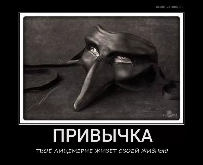 Давайте будем стараться меньше надевать маски, а чаще показывать свое истинное лицо. В классическом греческом языке оно является театральным термином и означает: «играть» или «делать вид». А слово «лицемер» - hupokrites в буквальном смысле переводится как «актёр». Так давайте оставим театральное мастерство на сцене, а в жизни постараемся быть людьми:)