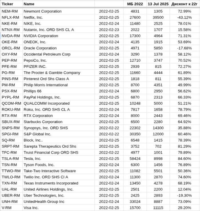 Ловлю себя на мысли, что возможно я заблуждаюсь так же как и чиновники ЕС, которые считают что под санкции в РФ попали в основном только госактивы, и где-то есть чатик на английском с тысячами иностранных инвесторов в РФ, у которых заморожены бумаги и которые ждут разблокировки, но скорее всего не ждут, т.к. в российских заблокированных акциях у них значительно меньшая доля от портфеля, чем у наших инвесторов в иностранных акциях.