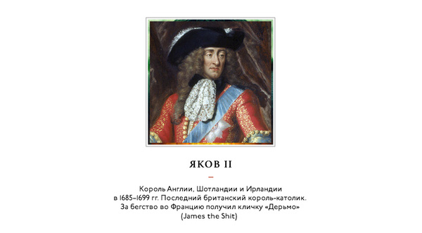 Британские монархи порвали с Папой Римским и создали своё особое христианство — без блэкджека, зато с монархом во главе церкви. Страна раскололась на протестантов-англикан (большинство) и католиков (незначительное меньшинство). Дело усугубляла политическая нестабильность: на трон попадали то венценосные католики, то не менее венценосные протестанты. Окончательную победу англикане одержали по итогам Славной революции с воцарением Вильгельма Оранского (в располосованных заградительными заборами городах Северной Ирландии до сих пор действует Оранжевый Орден, что-то вроде масонства для протестантов-лоялистов).