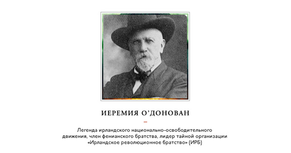 Самым известным радикалом XIX века был Иеремия О’Донован. Он родился еще в 30-е годы и застал Великий голод подростком. Англичан он ненавидел и активно включился в создание тайных обществ. Кроме того, О’Донован основал совершенно погромный журнал, в котором призывал читателей бить англичанку везде и всюду. Англичане оценили слог и оформили Иеремии пожизненное заключение за государственную измену. В тюрьме он провел 5 лет, а потом был помилован и отправлен в США под обещание никогда больше не возвращаться в Ирландию.
