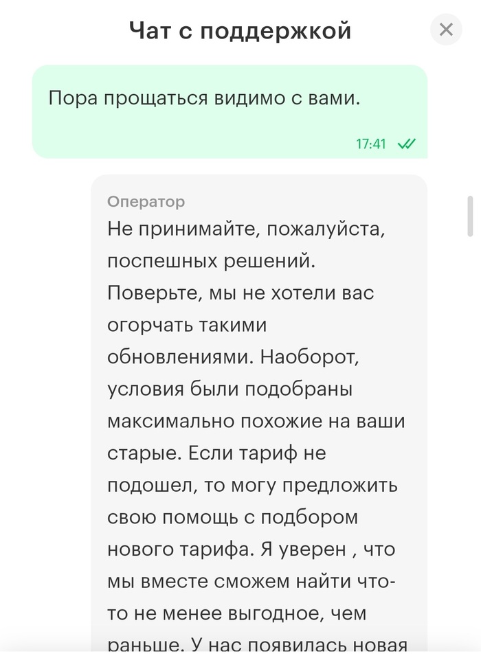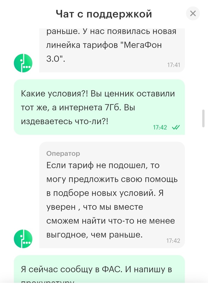 Мой первый пост. Сильно не серчайте. Я бы и не написал его, но это реально дно... Позвонила сегодня мама (63 года, работает в школе с детьми, ведет группы вк и телеграмме) и говорит, что говнофон перестал выходить в интернет и просит денег. Я стал разбираться и полез в её ЛК. У неё был архивный тариф, такой же как и у меня с безлимитным интернетом и платой 460 руб. Зашёл в ЛК и охренел. Они поменяли тариф, порезали трафик,но суки плату за тариф оставили прежней! Уведомлений не было об изменении, у меня 2 номера с теми же тарифами остались без изменений.