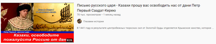 И ведь это такой абсурд когда в большинстве роликах на канале, сами казахи ни разу не упоминаются, хотя в превью все иначе. А копнешь глубже понимаешь что для автора и подписчиков, все тюркские народы прошлого и настоящего являются прямыми предками и потомками казахов.