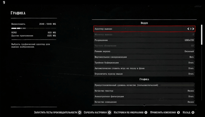 После этого игра начнет запускать с рабочего стола на русском языке и с адекватным FPS, настройки для игры можно поискать в интернете, я использую эти и они определенно лучше чем выставляемые автоматически игрой, при этом пишут, что если VRAM урезать до 1Гб, то это даст еще +10fps, но т.к. я сейчас прохожу RDR1 и Зельду где нужно 4Гб, то пока не эксперементировал и вполне устраивают стабильные 30-40fps на данных настройках.