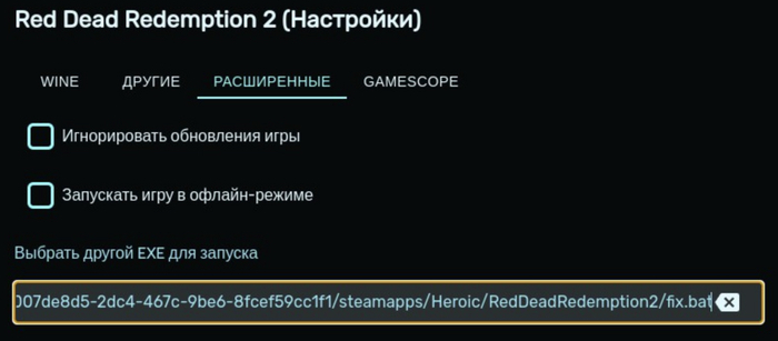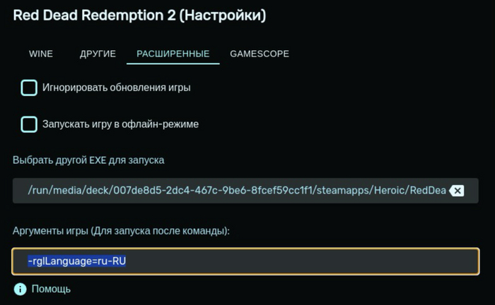 И вот, кажется все шикарно, игра работает плавненько, щелкаем "Добавить в Steam", переходим в Game Mode, запускаем игру, а она на английском языке! Долго мы разбирались с этой проблемой... Есть фикс как установить русский язык для пираток запускаемых напрямую через какой-нибудь PortProton, но он не работает для игр запускаемых через Epic+Heroic, хоть и решение похожее. Собственно вот инструкция как научить RDR2 русскому в Game Mode: