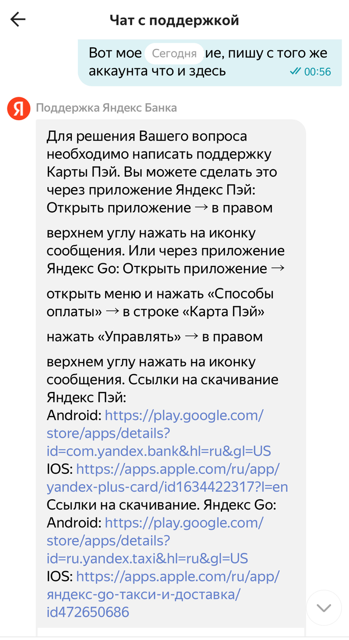 Пришёл в ПВЗ, все проверил, закинул нужную сумму на Я.Пэй карту и оператор не может ее списать. Сумма списывается и возвращается с ошибкой. Проверил лимиты - не помогает. Написал в поддержку Маркета - они посылают в поддержку Я.Пэй, пишу этим - они говорят проблема на стороне Маркета.