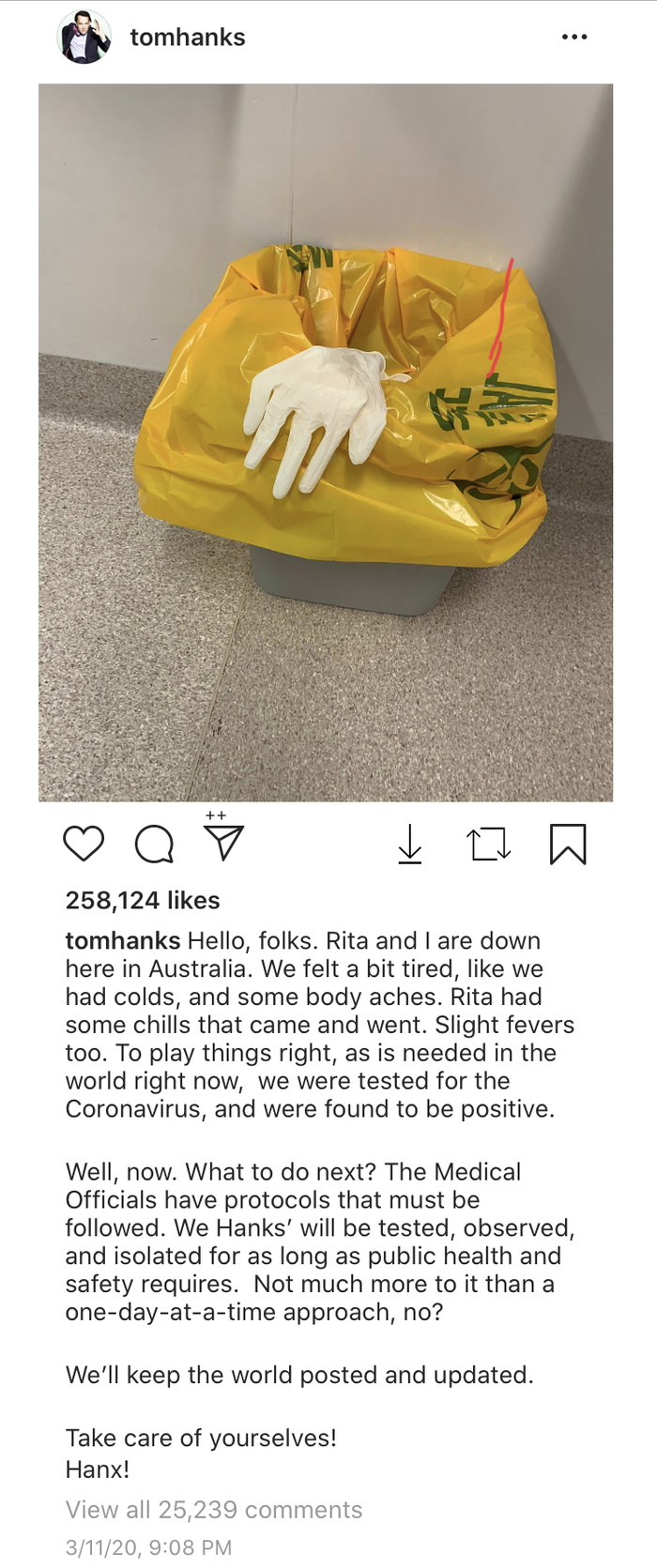 Американский актер Том Хэнкс и его жена Рита заразились коронавирусом, объявил он на своей странице в Instagram.