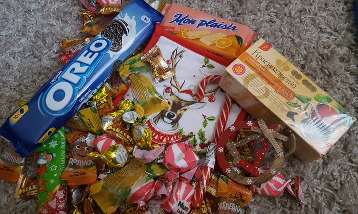 Я довольная как.... тигр, с оскалистой улыбкой, выходила с почты. Всю дорогу домой мы с мужем гадали, что в ней?)))) И честно сказать, я мечтала о сладком т.к. дома оно закончилось. Я жуткая сладкоежка, и день без сладкого не проживу!
