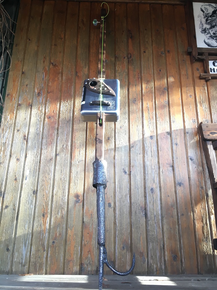 В качестве несущего элемента и одновременно грифа- кусок доски.