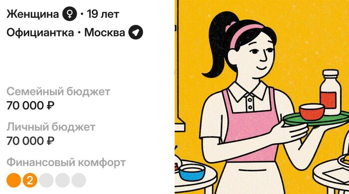 Мне 19, я живу в Москве и работаю официанткой в кафе у большого парка. Доход непредсказуемый, зависит от погоды, смен, чаевых и удачи. Ставка — 150 ₽ в час, плюс 1,5% от продаж и чаевые. Если отработать около 190 часов, получается примерно 70 тысяч, иногда выходит больше, иногда сильно меньше.