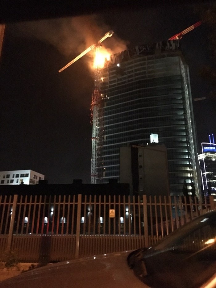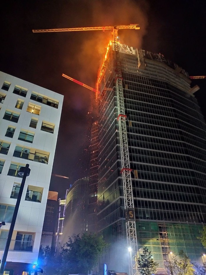 Сегодня ночью, 8 июня 2019, в Варшаве загорелась недостроеная высотка, по предварительной версии загорелся электроигструмент и огонь перекинулся на стройматериалы. Пожарные из за большой высоты(42 этаж) не смогли добраться до места пожара, и единственное что оставалось это сдерживать пожар и не давать ему спустится ниже. Никто не пострадал, в момент возгорания на объекте никого не было. Видео и фото прикрепляю