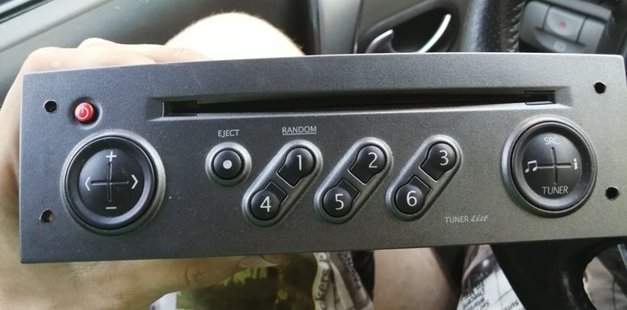 Поскольку стандартная магнмиола сценика поддерживает только радио и cd диски(мр3 диски не читает) первое что я решил поменять это магнитола, выглядела родная магнитола так