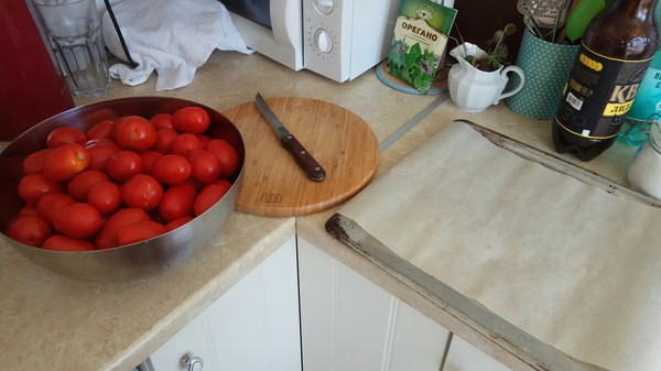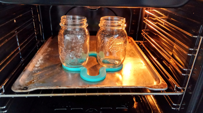 Тем временем можно поставить банки стерилизоваться. В моем случае была использована духовка, в которую я поставил сухие вымытые банки и включил температуру в двести градусов. Можно обойтись и без стерилизации, ограничившись тщательным мытьем, но я не знал, что в этих банках хранилось раньше, а жены, чтобы уточнить, дома не было, - решил перестраховаться.