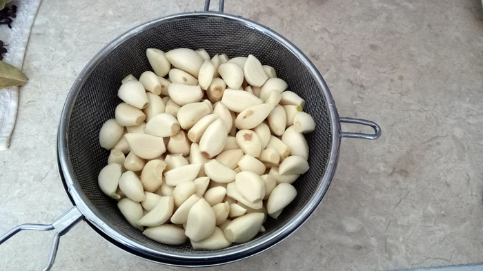 А теперь - самое время- и трудозатратное: очищаем зубчики чеснока от шелухи. Процесс длительный и не особо веселый, так что рекомендую включить хорошую музыку и не напрягаться. Чтобы дело шло быстрее, замочите чеснок на полчаса в теплой воде - это значительно ускорит и упростит процесс. Но всё равно будет скучно, так что заранее на это настройтесь.