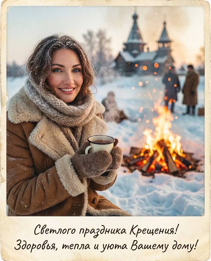 Используй ВСЕХ персонажей с прикреплённого фото. Сохрани реалистичное сходство, черты лица, выражения и пропорции, без мультяшного стиля. Советская новогодняя открытка 1970-х годов. Иллюстрация гуашью и темперой на текстурной бумаге с лёгкой зернистостью печати. Композиция: персонажи стоят близко друг к другу, слегка повернуты к камере, добрые полуулыбки, прямой взгляд. Одежда: тёплые шубы, меховые шапки, варежки с традиционным орнаментом. Фон: снежный лес, ели с советскими игрушками и гирляндой лампочек, мягко падающий снег. Внизу открытки — лисёнок и зайчонок. Надпись «С НОВЫМ ГОДОМ!» в характерной советской типографике, узкая светлая рамка. Цветовая палитра тёплая, винтажная, мягкие тени, уютная праздничная атмосфера.