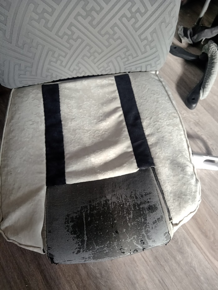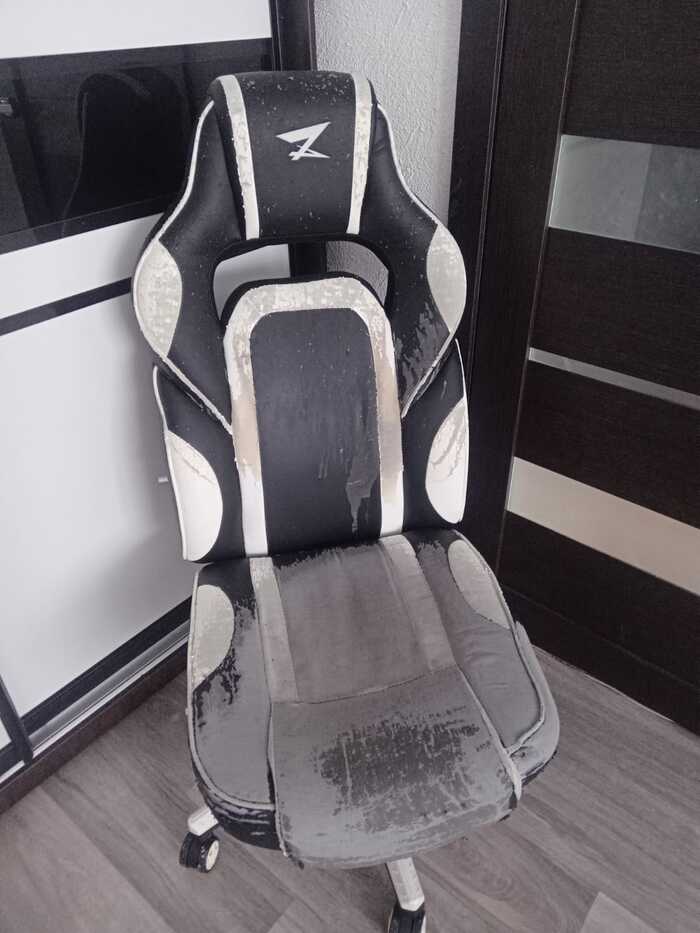И в целом я знал что оно быстро потеряет первоначальный лоск, но, не думал что так быстро! Буквально за год кресло стало таким: