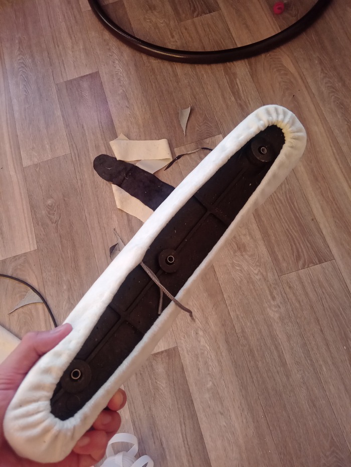 Финальным штрихом я засунул в каналы жилку для жесткости, когда она наконец мне пришла. Почему-то в наших магазинах для кройки и шитья ее нигде не было, ну да и ладно. Результат весьма порадовал! Чехол стал куда более оформленным, края приобрели четкие контуры.