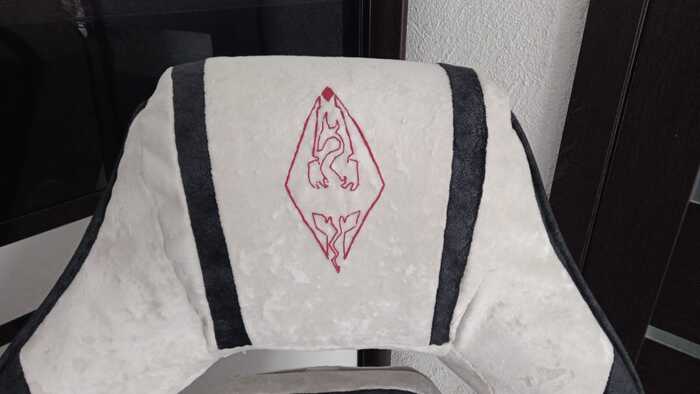 Да, в качестве украшения подголовника я вышил бога-дракона из TES.