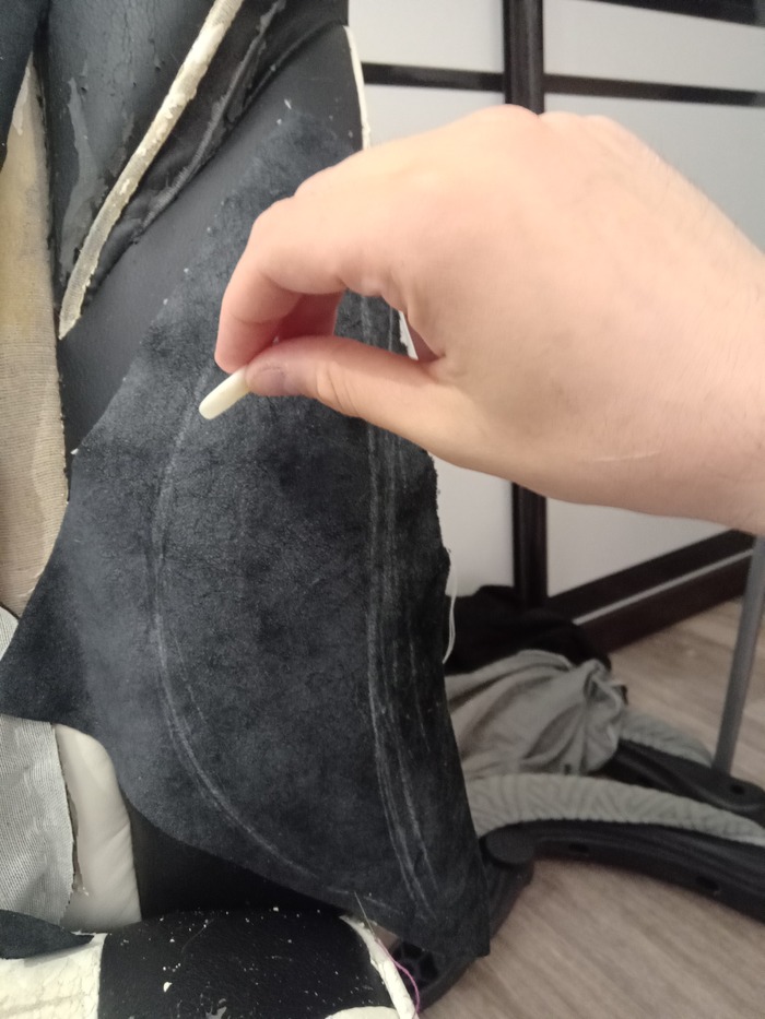 В общем было принято решение сшить чехол своими руками, который бы повторял форму кресла и вообще был бы сшит ну прямо вот custom по нему.