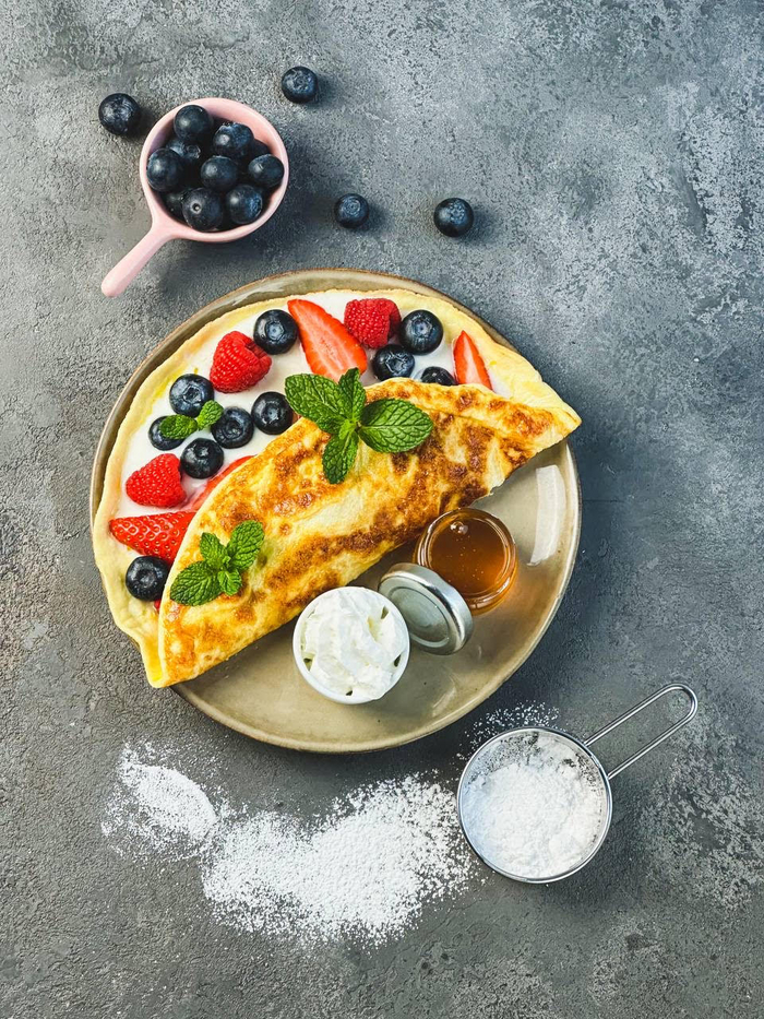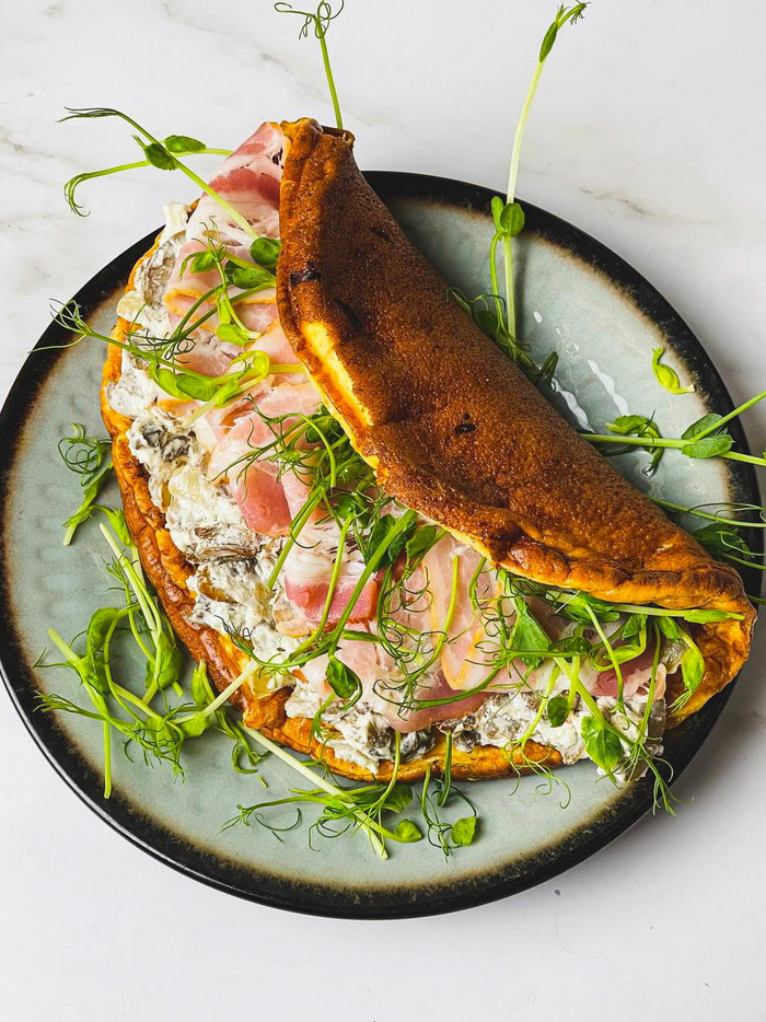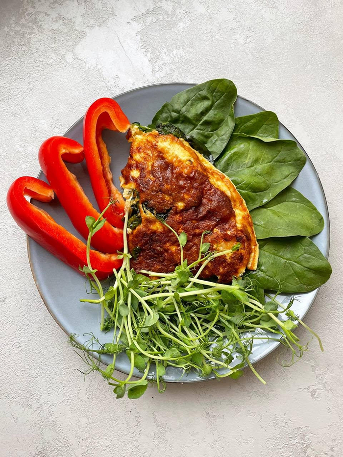 Предвосхищая комментарии по поводу изобилия свежих овощей и ягод на фото: они не входят в состав ингредиентов, и вы можете подавать омлет без них, вкус блюда от этого не ухудшится. Я лишь предлагаю способ подачи, ну и в свой рацион всё же стараюсь включать свежие фрукты, ягоды, овощи и зелень. Я не диетолог, и не претендую на это звание. Рационы, пищевые привычки и объёмы порций у каждого свои. Про кликбейтные заголовки: да, это они самые, но это же забавно ;).