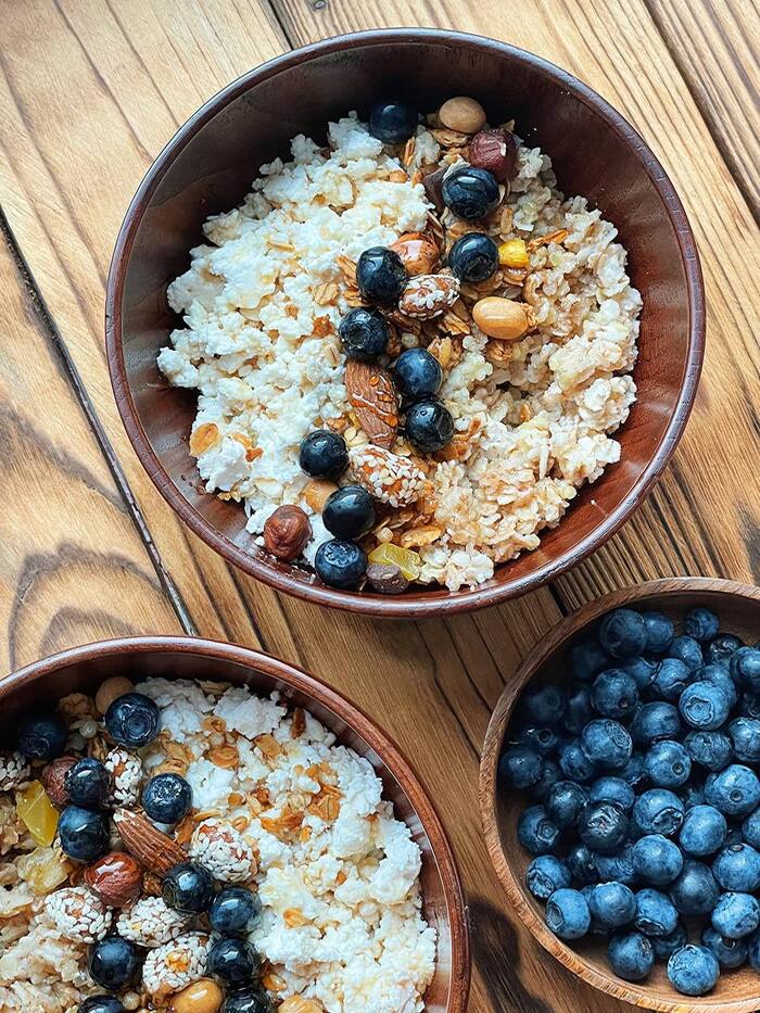 ◦ Свежие ягоды, гранола, орехи - по вкусу