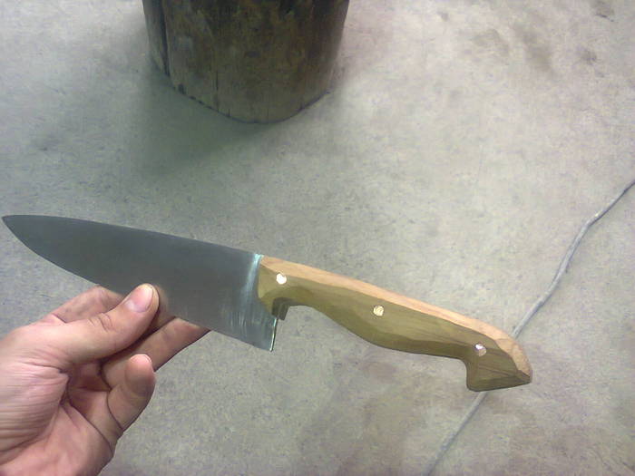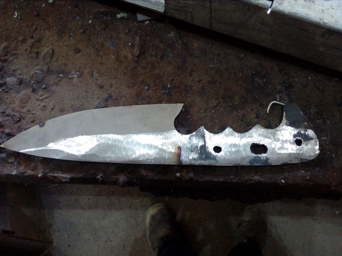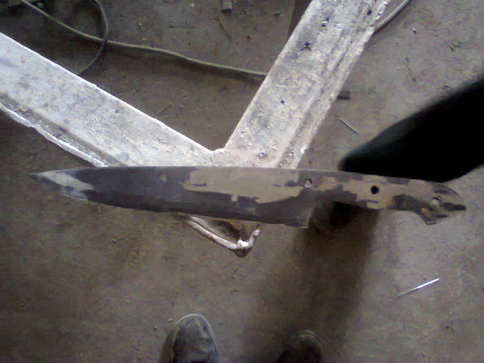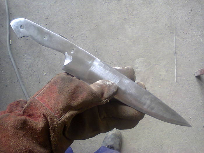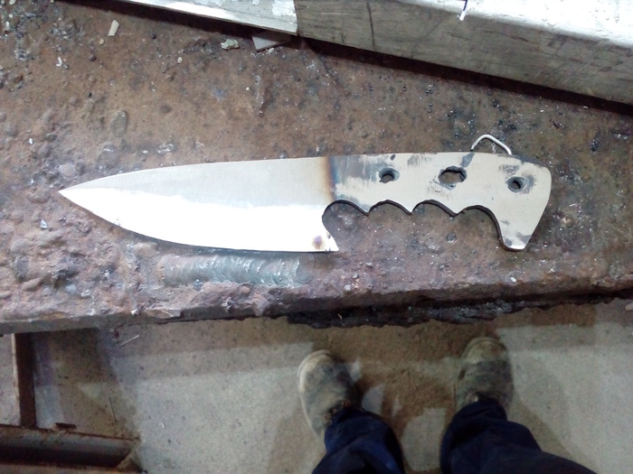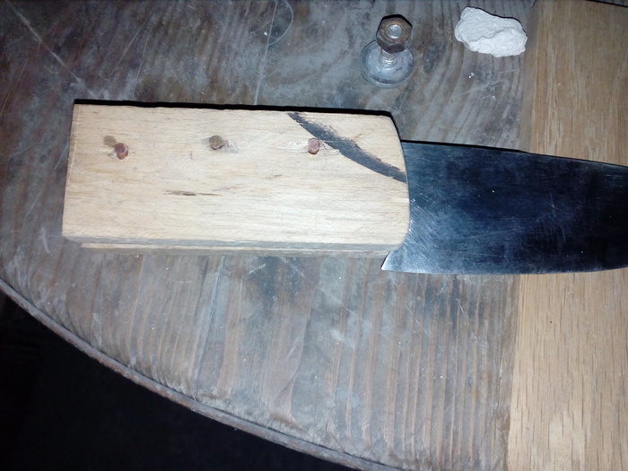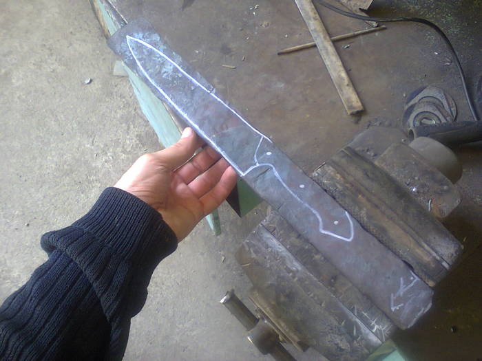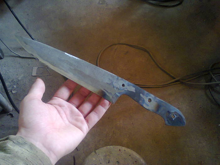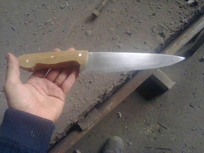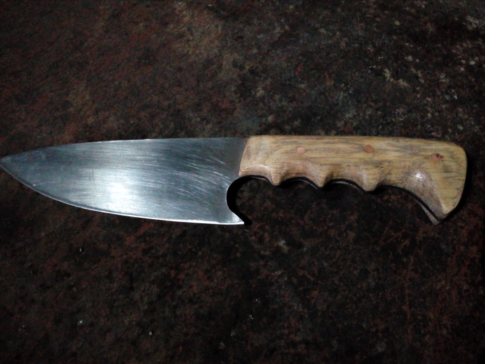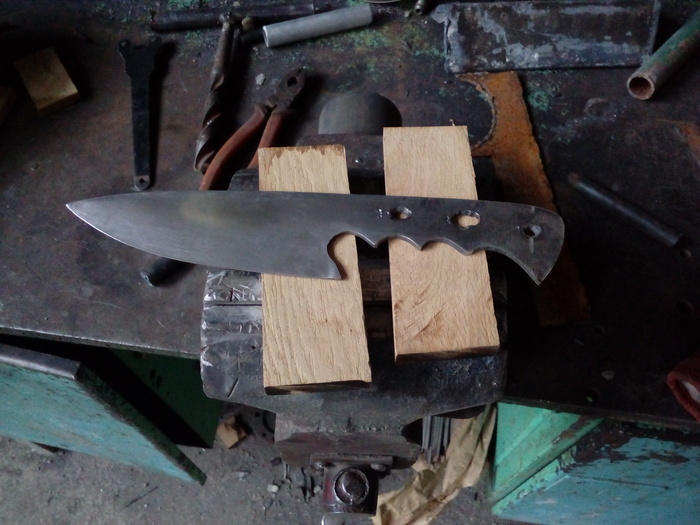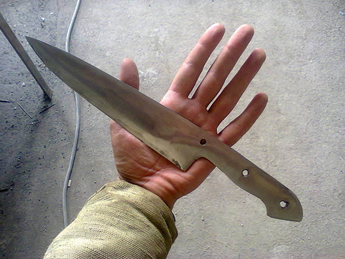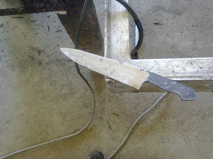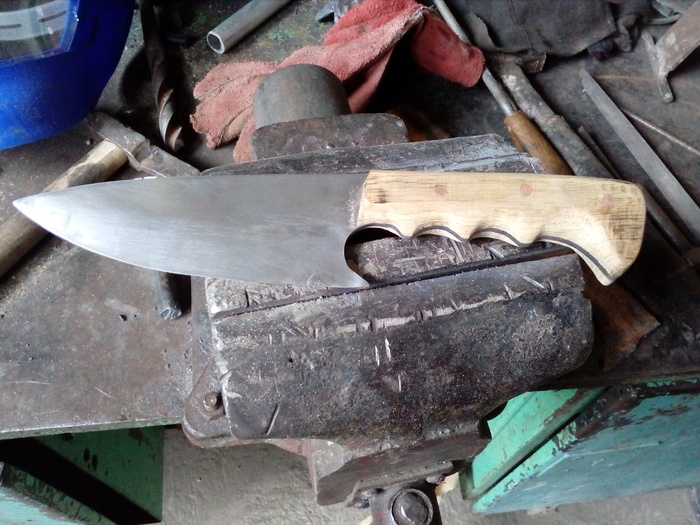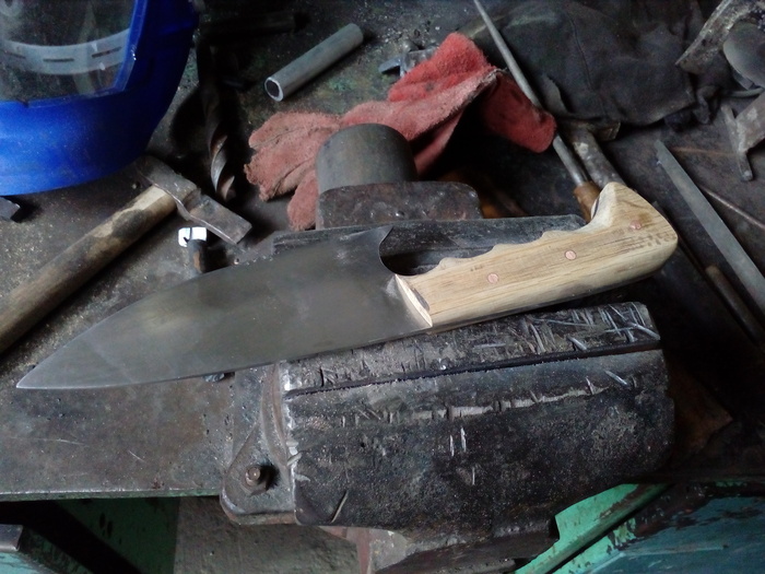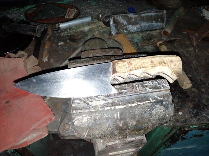 Причем делаю нож 2-ой раз в жизни.. Так чисто супруге на кухню в повседневное пользование. Первый экспериментальный был из ножки впускного клапана от какого-то двигателя. Этот можно тоже назвать экспериментальным, т.к. я не сильно разбираюсь в свойствах различных сталей и изготовлении ножей.