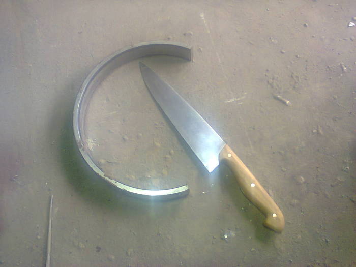 Колбасорез готов... P.S жалко конечно но на лезвии потихонечку появляется ржавчина от контакта с водой.. ну что же .. это был эксперимент.. найду хороший металл и сделаю ещё что нибудь... Хотя этот металл тоже хороший и оч прочный...