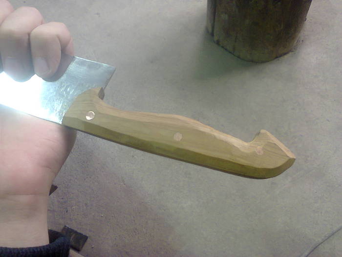 Рукоять: Дуб дерево ))) взятое из выброшенной декоративной полки.