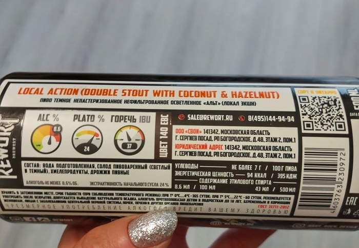 Русский имперский стаут с уральской столицы. Бутылка объемом 0,33 литра в местном магазине крафта обошлась в 210 рублей. Пиво нефильтрованное, непастеризованное, тёмное. Содержание алкоголя 10,5% и плотностью 26%.