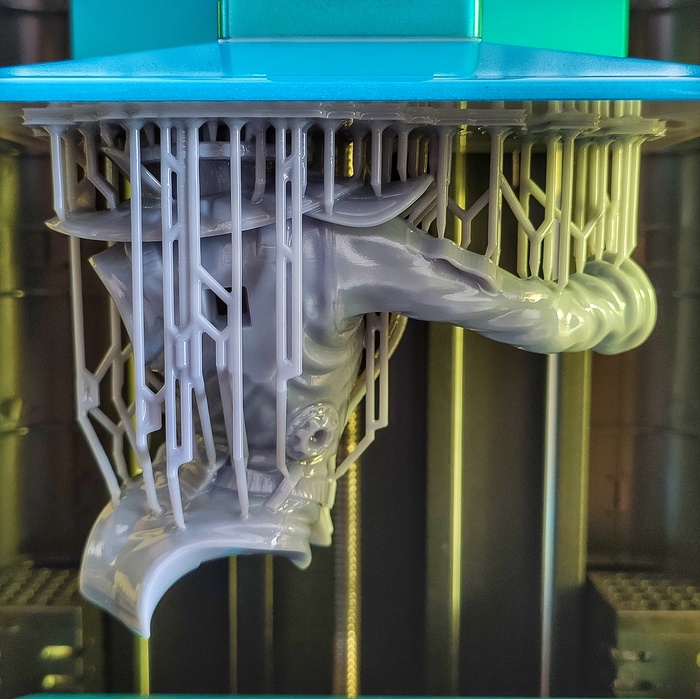 При печати юзаю CHITUBOX , поддержи всегда использую тяжи, время засветки нижних слоев 70сек( если меньше, то не держится на платформе), время засветки печатного слоя 12 сек, на данной смоле (Anycubic Grey).