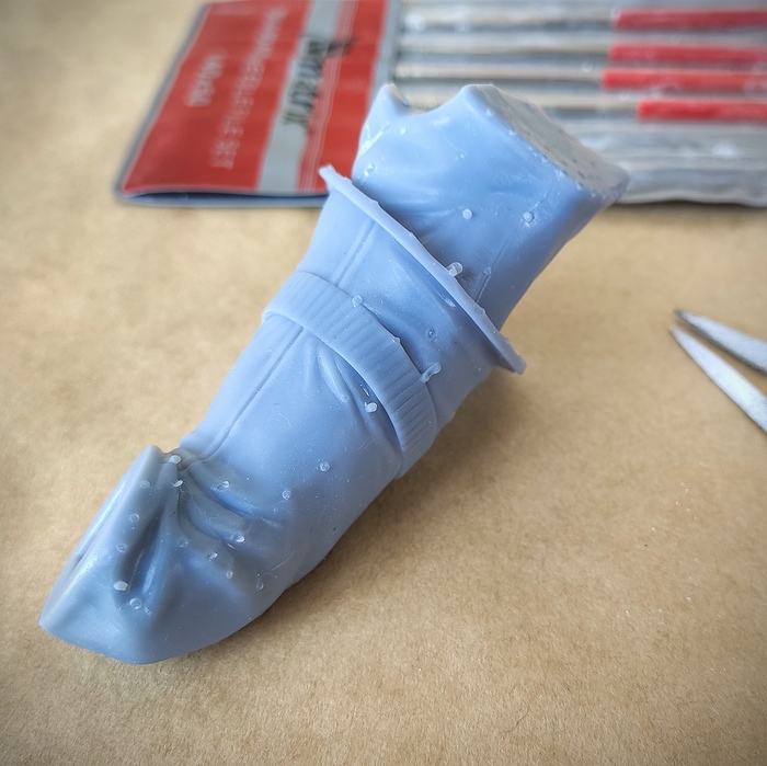 Мелкие царапины на деталях не критичны, они уйдут после грунтовки модели, но без них пока не получается, не всегда можно подлезть под удобным углом.