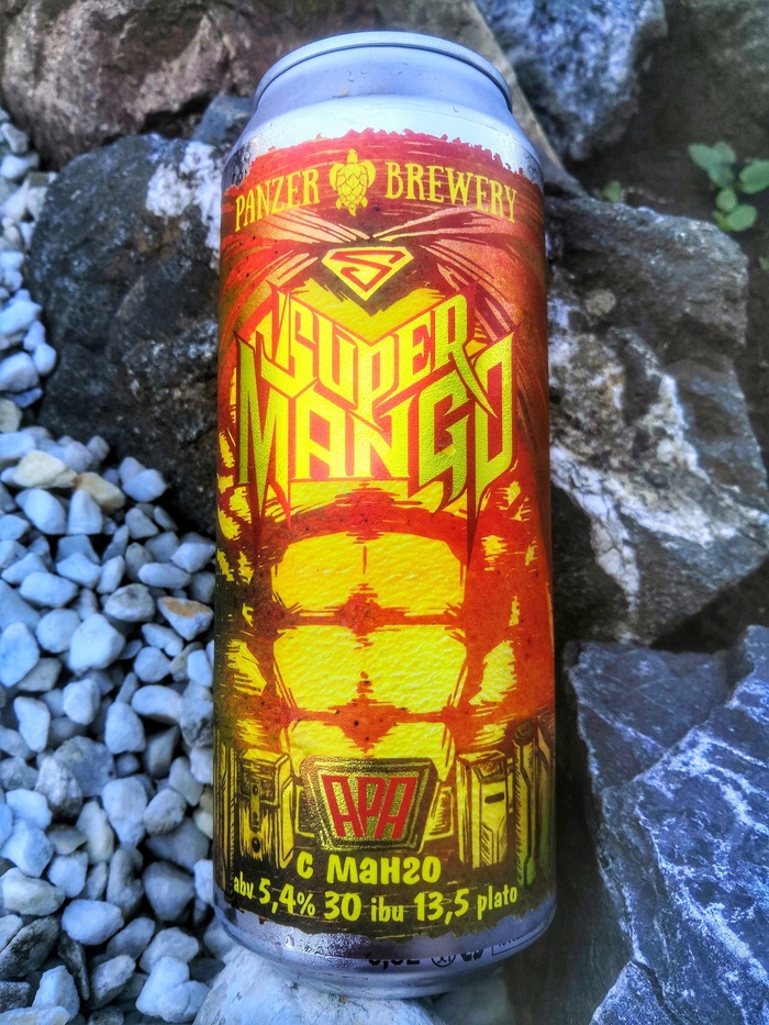 Ну дак о чем это я? Ах да, сегодня у меня в гостях Panzer, "Super Mango", который обошелся мне в 220 рублей. Товарищ от московской пивоварни, является представителем американского светлого эля. Объем 0,5 литра, 13,5 плотность 5,4 градуса, горечь в 30 IBU, и цветность в 9 EBC.