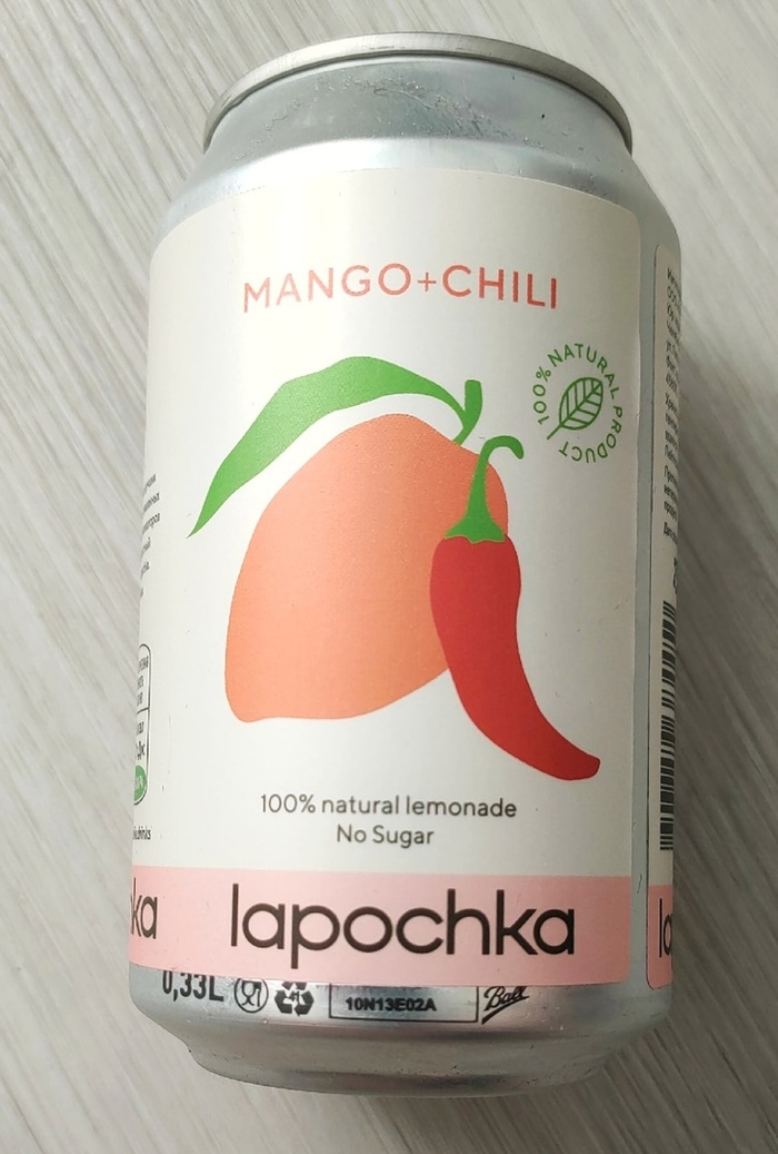 Довольно необычный вкус. Сделав глоток, лимонад показался довольно сладким. Отчётливо чувствуется манго. Послевкусие наступает быстро, во рту начало всё щипать. Появился господин Чили. Острое послевкусие остается надолго. В груди стало тепло, как будто пью крепленую алкашку, а не безобидный лимонад.
