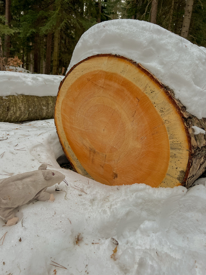 Прекрасно погуляла по лесу, покушала пирожочки, посчитали кольца на деревьях.