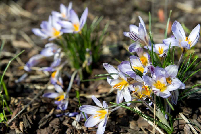 Бутоны уже раскрыли крокусы, подснежники, пролеска двулистная и зимний весенник.