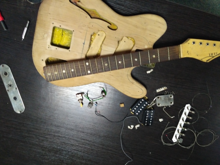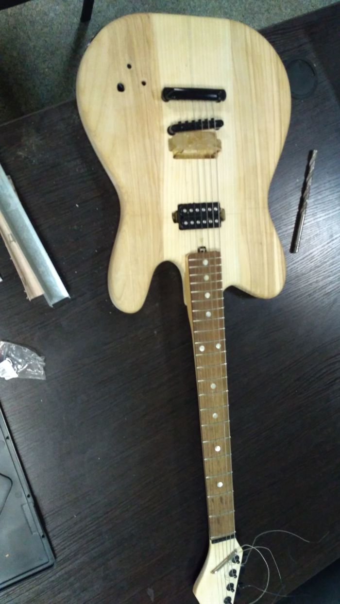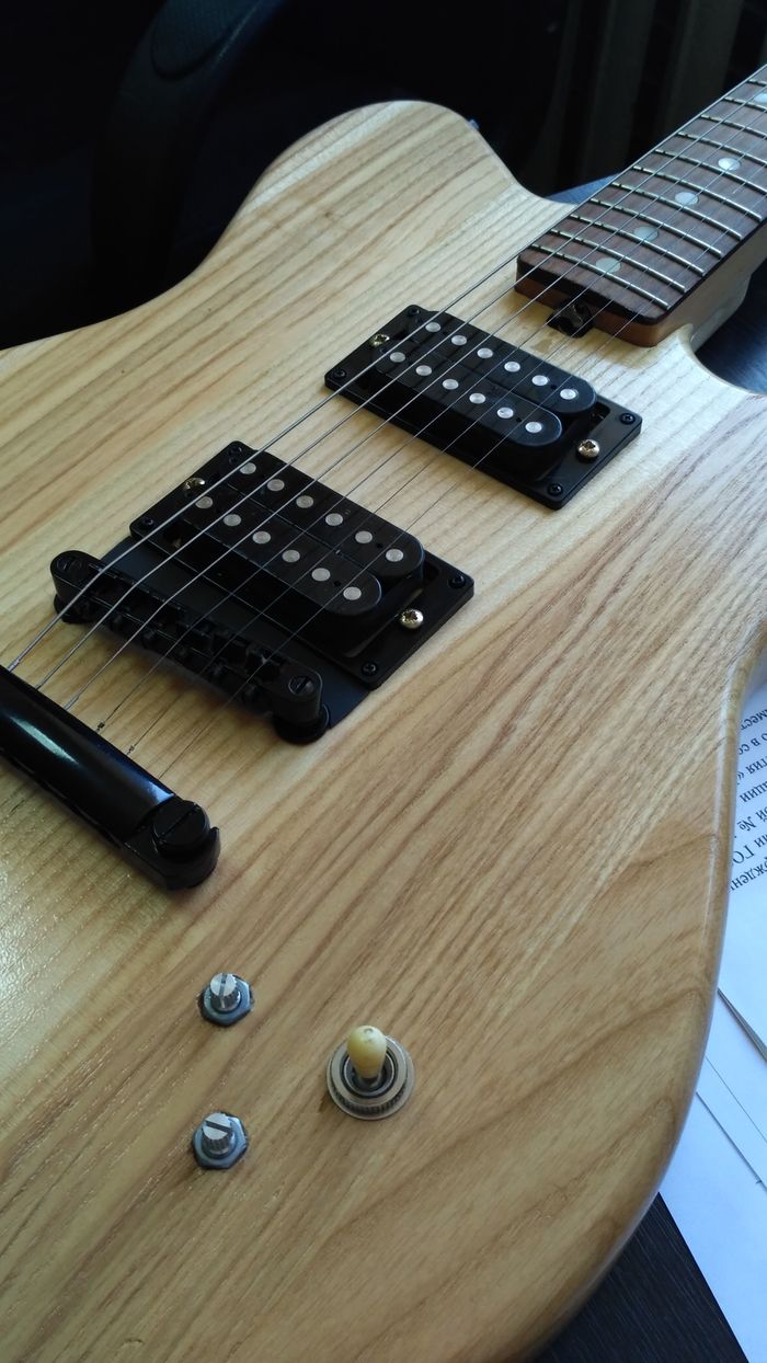 На все это действо понадобилось пара месяцев, 4000 рублей и немного желания доделать начатое 15 лет назад. Фурнитуру заказывал у китайцев. Звукосниматели оставил те что были. Все полости экранированы. Лак яхтный из баллона. Строй держит. Струны новые купил в музыкальном магазине. Звучит неплохо. Сравнивали с неплохим ибанезом, вашбурном, китайским ширпотребом. Звук уровня вашбурна x серии. Что за звукосниматели понятия не имею. Если будет возможность, то выложу демку звука. Сильно не пинайте я не столяр ни разу.