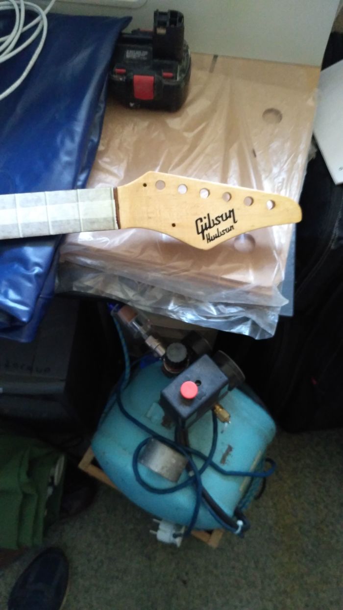 Затем жизнь бедного студента и необходимость работать отодвинула гитару на задний план. В какой-то момент на работе было решено её вышкурить и перекрасить. До кучи изменить форму головы грифа и заменить датчики. Я не знаю чем я руководствовался в тот момент. Убить гитару окончательно получилось, а привести в порядок нет. В итоге очередной раз я про неё забыл. Но полгода назад я её откопал....