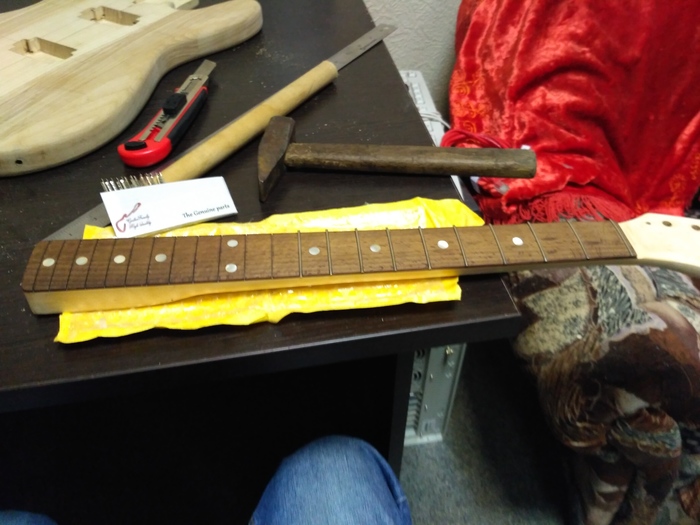 С помощью молотка, деревянной проставки и какой-то матери посадил новые лады.