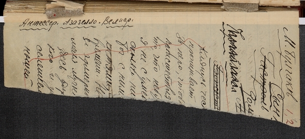 Чудом сохранившийся артефакт начала 1920-х годов. Текст, который Булгаков написал на манжете, видимо, так и не был отправлен получателю. Скорее всего, записка была адресована писателю Юрию Слёзкину (1885–1947) — популярному до революции беллетристу.