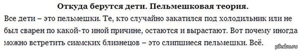 6 SoJay Пельмешковая теория 11 лет назад Еще одна теория в копилку ответов детям на вопрос "Откуда я взялся". Пельмени Дети Происхождение Откуда берутся дети