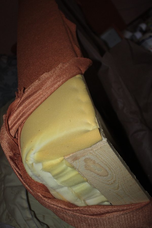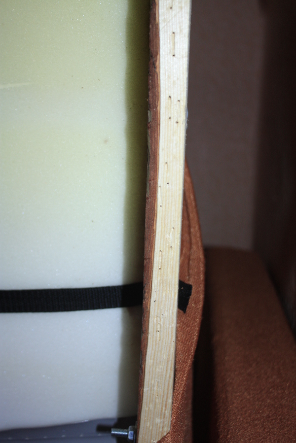 К переднему торцу поролон также незамысловато прибит скобами и приклеен.